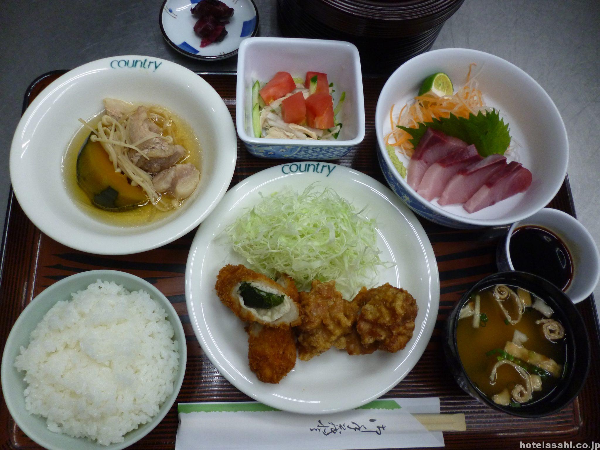 今日のメニュ-はブリ刺身.豚肉カボチャ煮.鶏肉しそ巻き.ササミサラダです